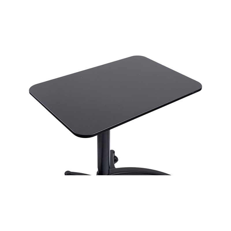 В столе используется встроенный механизм газовой пружины для регулировки высоты. Пользователи могут вручную настроить рабочий стол так, чтобы он оставался на любой высоте в диапазоне вертикали от 720 мм до 1130 мм. Этот подъемный механизм работает без электричества, что приводит к относительно упрощенной конструкции. Рабочий стол имеет квадратную форму, длину 715 мм и ширину 495 мм, что обеспечивает ровную рабочую поверхность. Основная конструкция изготовлена из алюминия и железа и отделана методом порошкового покрытия, доступным в черном и белом цветах. Основание оснащено четырьмя роликами, два из которых оснащены функциями блокировки, что обеспечивает легкую мобильность и надежное позиционирование в неподвижном состоянии.